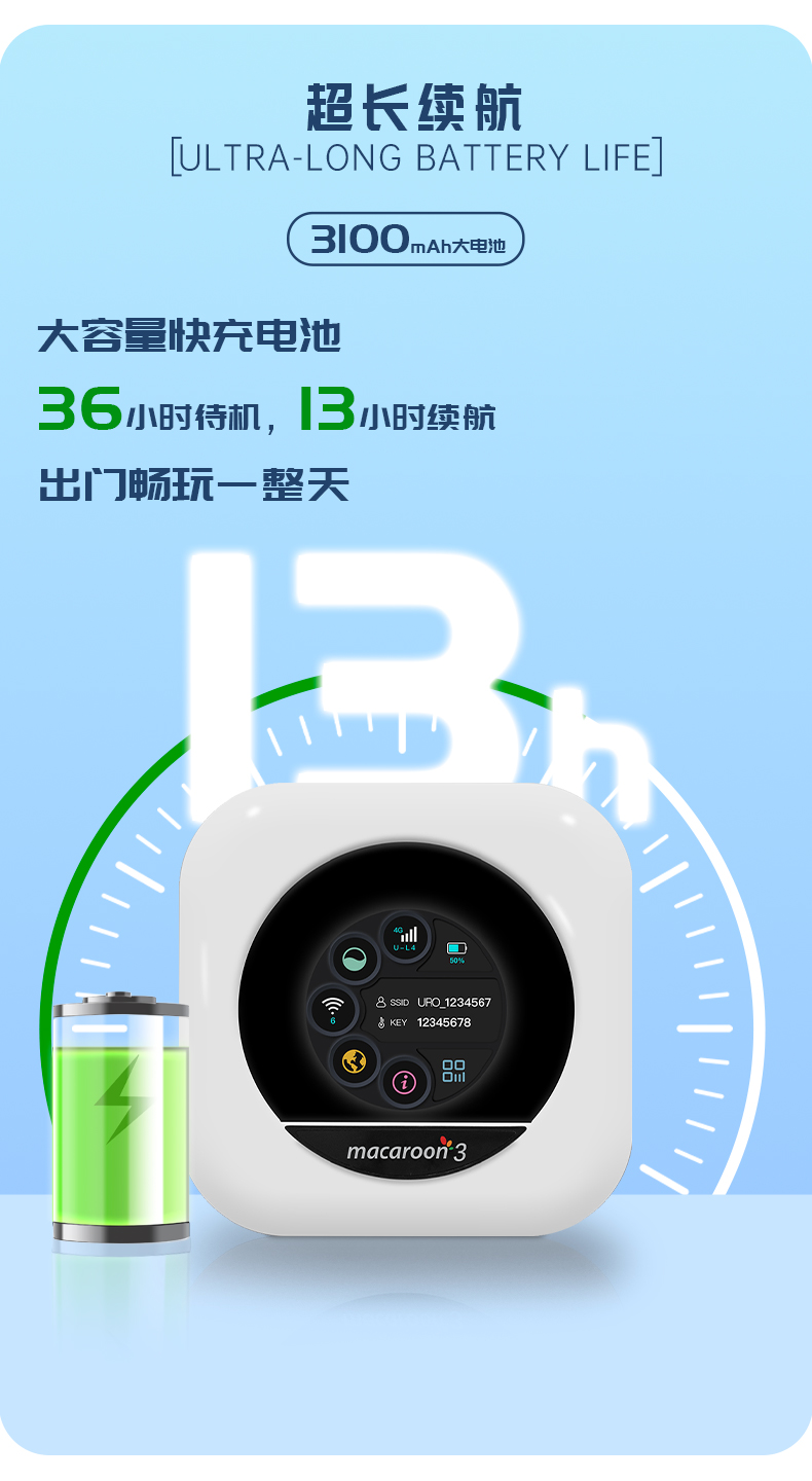 机器性能:最多连接10台设备,续航时间为13小时。
